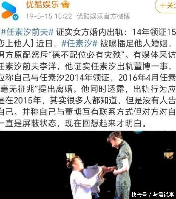 这时候就让人想起女方以前的感情经历,毕竟有过“前车之鉴“难免让人担心。 “前车之鉴” 任素汐早年和大学同学结过婚,结婚之后特别低调,两人感情出现问题是因为男演员董博, 董先生当时有老婆,夫妻俩谈了将近十年的恋爱才结婚,董先生的老婆还帮她介绍了很多的资源,本来两个人感情还是挺好的。